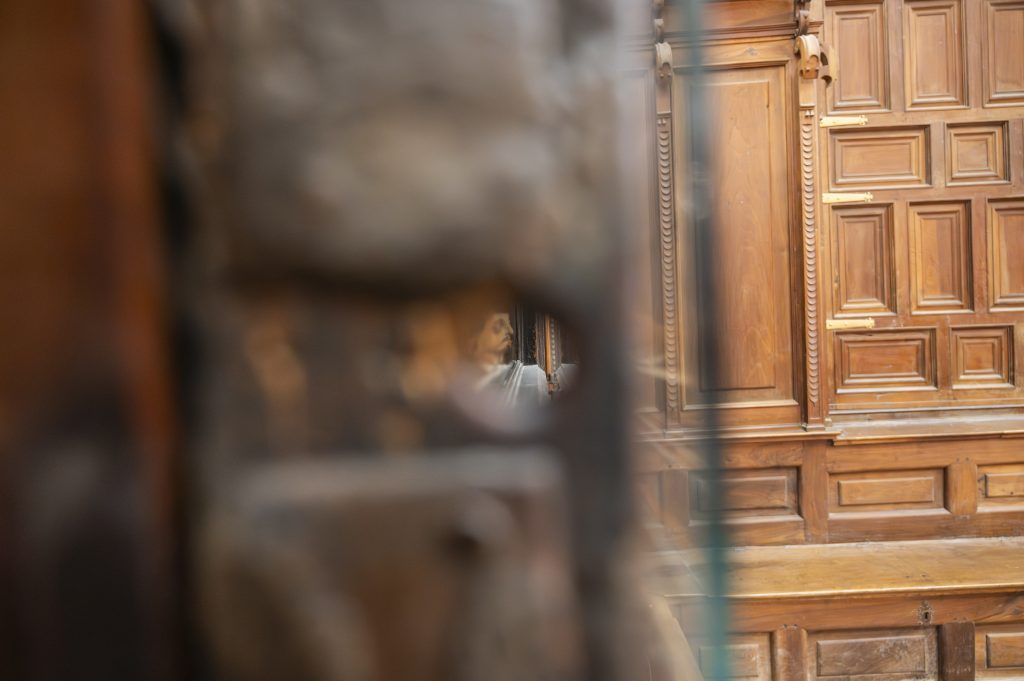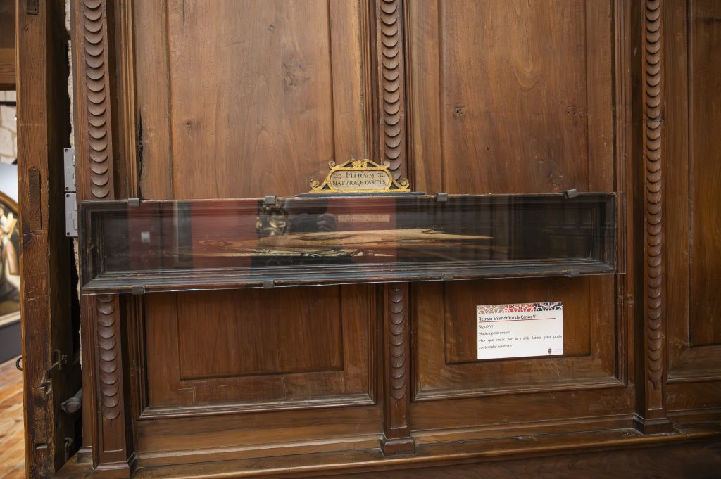 Ocurrió que entré a visitar al catedral de Palencia. Preciosa; recomendable a cualquiera con independencia de su edad, sexo o condición. Todo un monumento hermoso y bien cuidado. Y dentro una pequeña-gran sorpresa que no pude imaginar: en una especie de cartela, adherido a una de las puertas interiores de la basílica se podía apreciar un extraño objeto, una pequeña caja alargada cubierta con un cristal transparente que permitía ver en su interior una imagen distorsionada e irreconocible. Una tarjeta bajo ella invitaba a observar la caja lateralmente a través de un orificio en lugar de abordarla frontalmente. Y eso hice.El resultado de la observación (en este caso una fotografía a través del orificio lateral) me pareció algo confuso en primera instancia, pero estaba sobre aviso acerca de lo que iba a contemplar y, así fue. Con una pequeña dilación pude identificar la imagen de una persona que, tal como rezaba la leyenda que sustentaba la tarjeta, se trataba nada más y nada menos que del retrato del rey Carlos I de España y V de Alemania. En definitiva, era un anamorfismo. Había visto en internet otros de pintores profesionales y de callejeros simulando precipicios y mundos imposibles, pero este era el primero que podía contemplar in situ. El artilugio poseía todas las características de ese tipo de encuentros que te alegran el día y lo hacen memorable. «Mirum natura et artis» (Maravilla de la naturaleza y el arte), reza el título de la obra que algunos adjudican a Lucas Cranach, aunque, como en tantas otras técnicas, en esta Leonardo da Vinci fue uno de los pioneros.